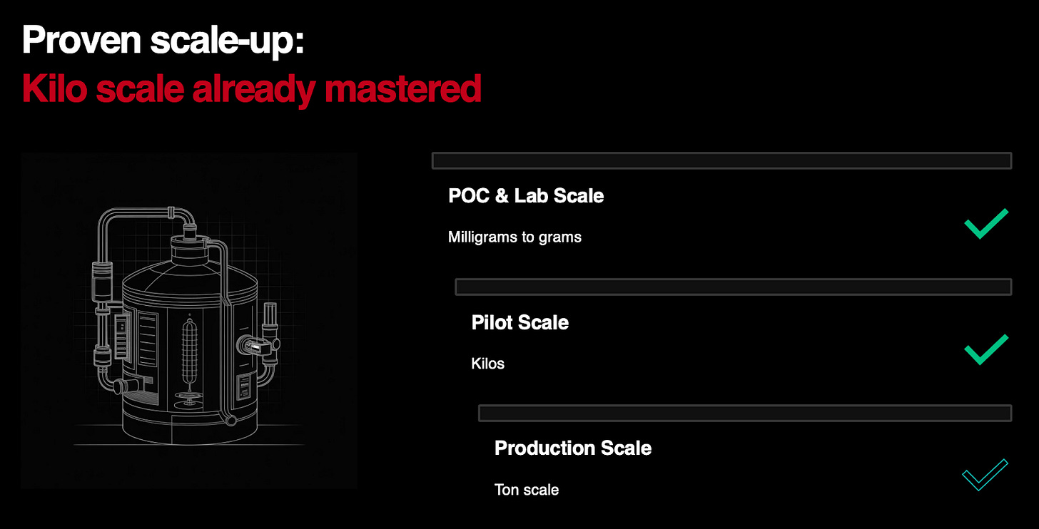 Traditional biomanufacturing platforms often require bespoke production facilities, which limits partner optionality and pushes companies towards CAPEX-heavy builds or a narrow set of large partners. By contrast, eXoZymes’ platform can run on standard bioreactor infrastructure, as the technology’s key differentiation sits in the inputs (substrates, engineered enzymes, process design, etc), not in any unique hardware.